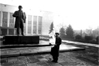In the foggy early morning in Vinogradov's town center, Zev stands next to a statue of Lenin. He smiles and says, "Lenin was a Jew. That's what they say."